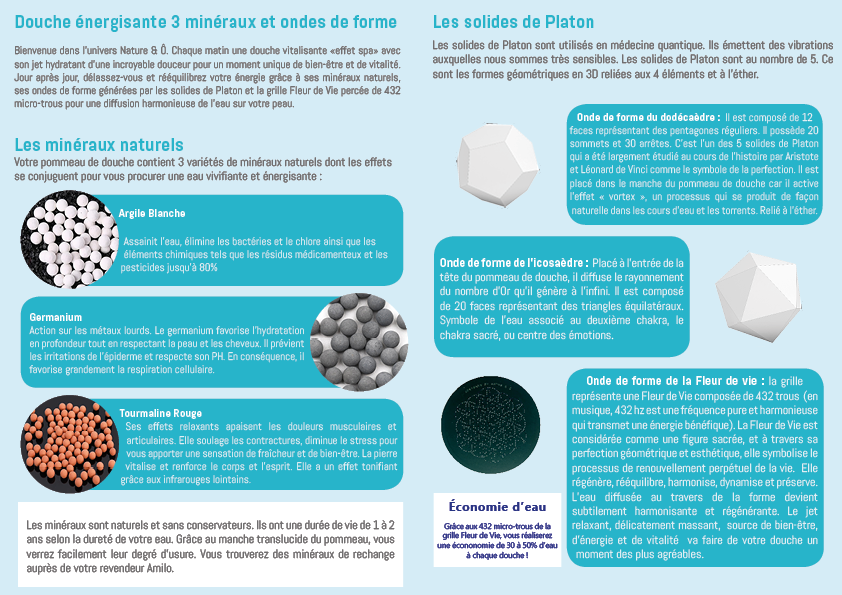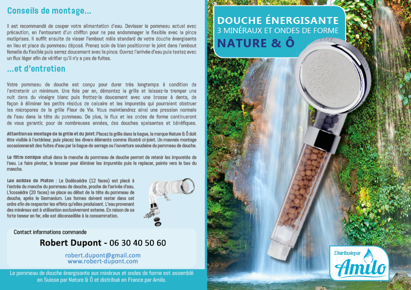 Dépliant douche nature et eau. Format A5 2 faces (4pages) papier au choix. Le prix inclut la personnalisation avec vos données, l’impression et la livraison chez vous.